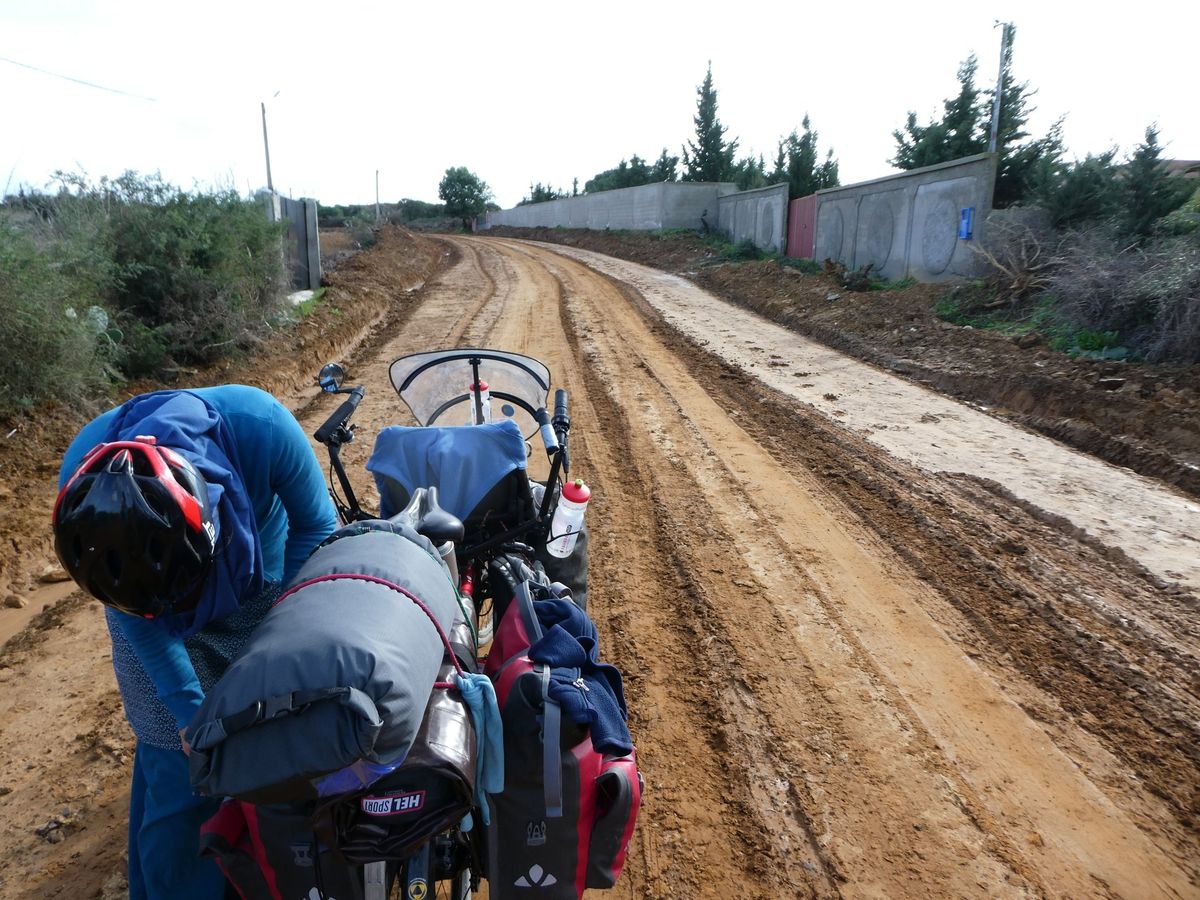 ...and what a nice surprise: In the very cosy guesthouse we found in Tangier - people hosted our tandem in the living room! - we met Theo again, an American whom we had met on the "Camino" in Logrono/Spain. He saw our tandem standing there on the ground floor before he saw us, recognised the bike, and was sure it could only be us again :) Next day, we had a quick touristic visit to Tangier and headed off to Assilah, a quite town from pre-Roman times. From there we rode the following day inland to pay a visit to the monolithic site of Cromlech M'Zoura, sometimes also called the Moroccan "stonehenge" and continued to Larache on the coast.